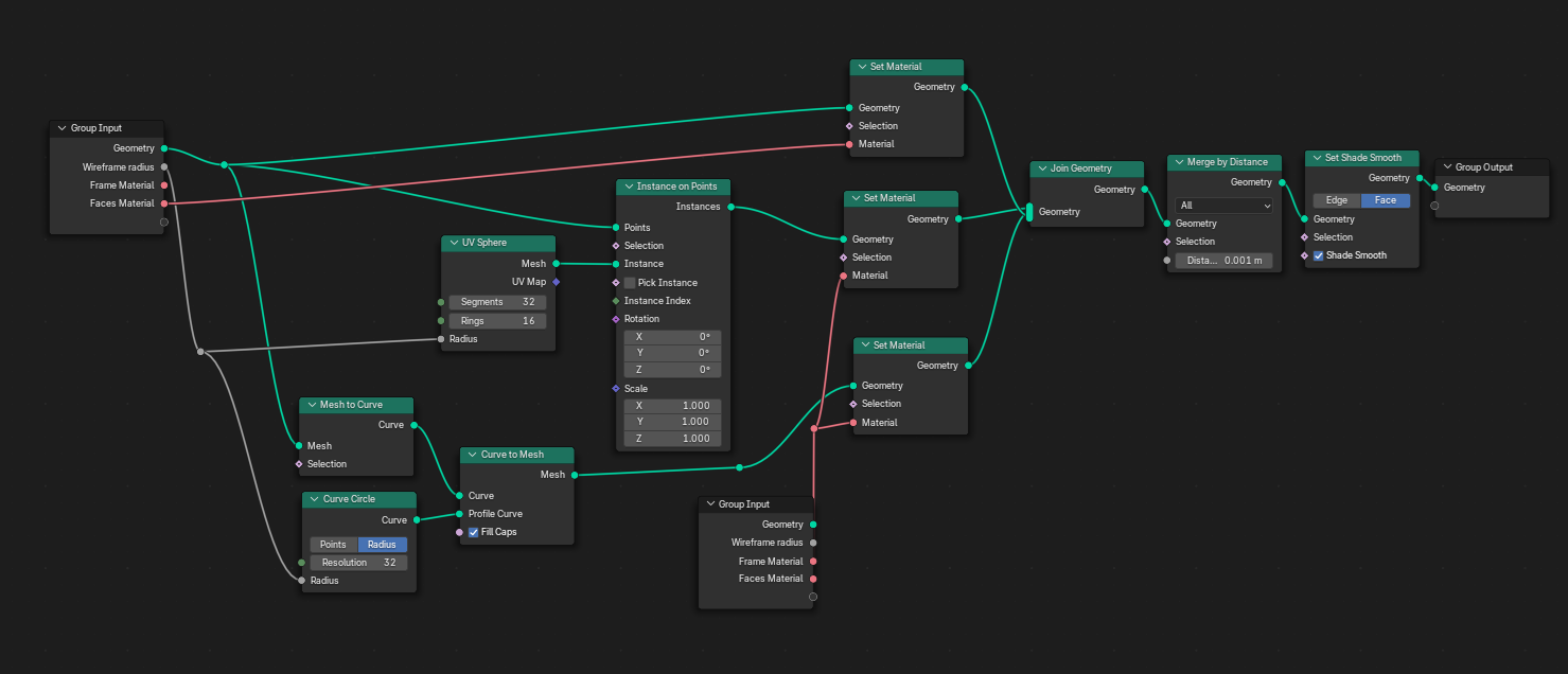 Corners are the easy bit. Instance on Points: Sphere. I've set the radius to 0.1m